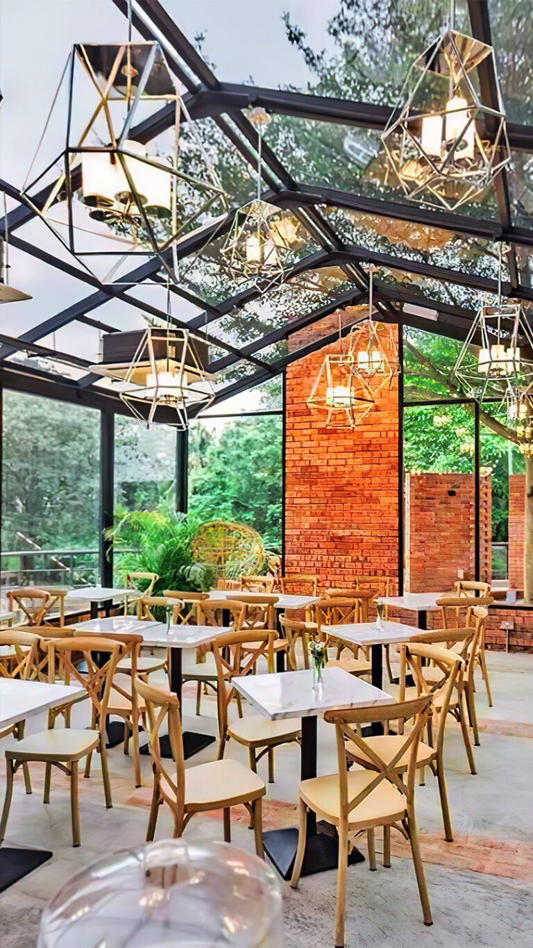 Raw brick walls lend an industrial and minimalist charm to the interiors as well. If the weather permits, one can also take the alfresco dining option for a more laid-back experience and be even closer to nature.